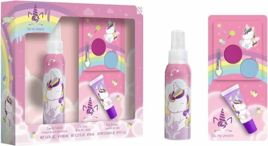 Eau My Unicorn is een magische en unieke geur. De fantastische essentie van eenhoorns is vastgelegd in de unieke en magische Eau My Unicorn set. Gevuld met pastelkleuren en regenboogstof, liefde en fantasie, heeft de mix van magie en suikerspin het zoetste parfum gecre?erd. Kleine meisjes zijn gek op eenhoorns, iedereen heeft er een nodig in hun leven!