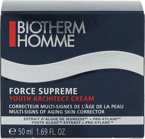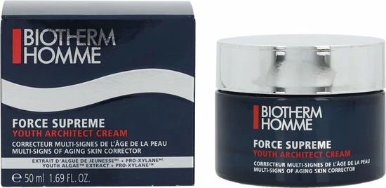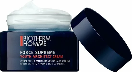 Force Supreme Youth Architect van Biotherm Homme is een hydraterende anti-aging gezichtscr?me voor mannen geformuleerd met Life Plankton? , Youth Algae Extract? en Proxylane. De cr?me heeft een multi-corrigerende werking en vermindert de tekenen van huidveroudering door de huidtextuur te verbeteren en deze te versterken en verstevigen. Voor een gladdere en jonger uitziende huid.