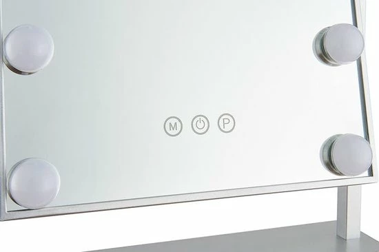 Verander jouw kaptafel in je eigen beauty salon met deze schitterende Hollywood verlichte visagie-spiegel. Beauty specialisten over de hele wereld zweren bij de elegantie en stijl van deze luxe spiegel. Voel je als een professional en breng make up nauwkeurig aan met de schitterende helderheid van de LED-verlichting. Met deze spiegel garandeer je jezelf elke dag van de perfecte make up en een volmaakte look. Deze Hollywood spiegel is het perfecte model voor elke kaptafel. Door het handzame formaat kun je het makkelijk verplaatsen en in elke richting draaien. Plaats deze prachtige spiegel tussen je make up als de ultieme accessoire.]Specificaties