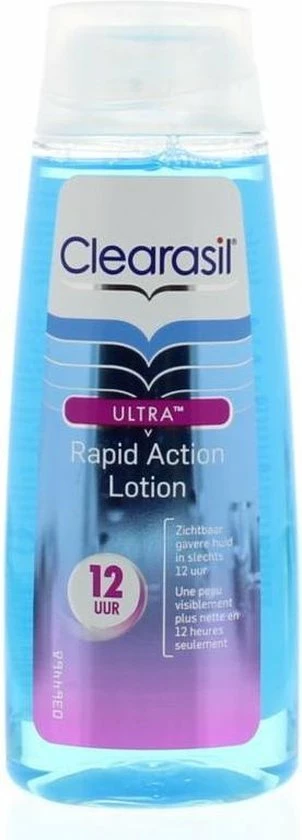 Een gave, matte huid binnen 12 uur? Het kan met Clearasil Ultra Rapid Action Lotion! Deze lotion reinigt de huid, vernauwt de pori?n en helpt nieuwe puistjes voorkomen. Nooit meer een glimmende huid dankzij unieke ingredi?nten die je huid reinigen en verzorgen. Resultaat: een stralende schone en gave huid met een egale teint.