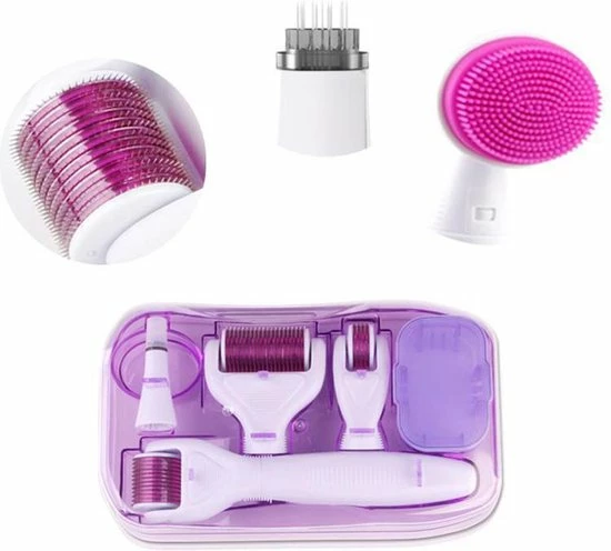 Beste recensies van ? DRS 6 In 1 Derma Roller Kit Micro Naalden | Bestseller | 1200/1.5mm, 720/1.0mm, 300/0.5mm + Tool Met 12 Naalden + Siliconne Gezichtskam + Desinfectie Basis | Gezichts- En Huidverzorging | 6 In 1 Paars ?