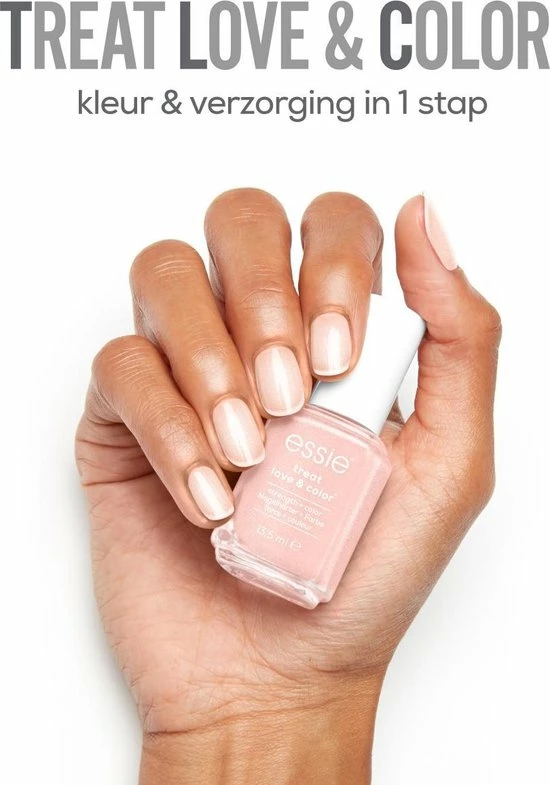 De TREAT LOVE & COLOR? collectie is essie?s kleur en nagelverzorging in ??n. De collectie is na een periode van meer dan vijf jaar onderzoek ontwikkeld. TREAT LOVE & COLOR? combineert het beste van nagelverzorging en -kleur in ??n product. De collectie gekleurde nagelverharders is vooral geschikt voor kwetsbare, brosse en zwakke nagels. de nagellak van TREAT LOVE & COLOR? geeft sterkere nagels in drie dagen.** * Zoals verboden volgens EU verordening 1223/2009 **Klinische test: na drie (3) dagen gebruiken: minder droge/breekbare nagels, verbeterde nagelsterkte en verbeterde algehele gezonde uitstraling van de nagels