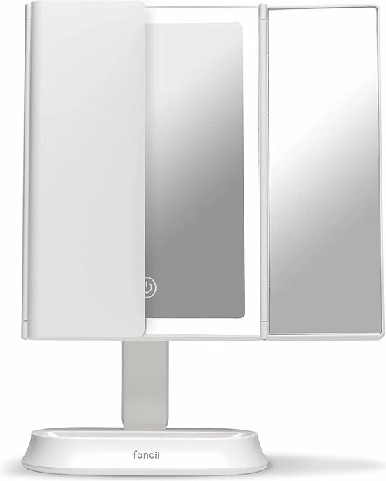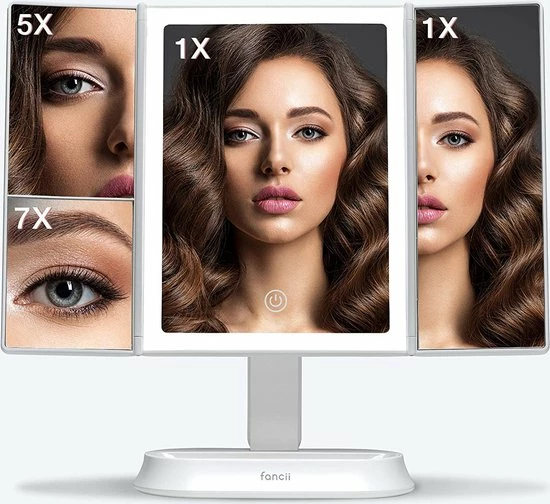 Beste Pirce ✨ Fancii Make-up Spiegel Met Natuurlijke LED Licht – 5x & 7x Vergroting – Driedelige Makeup Mirror Met Dimbare Verlichting – Touch Screen – Stand – Sora (Wit) ⌛
