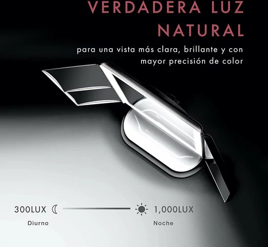 - Echte natuurlijke daglicht LED’s – 2x helderder en zachter dan de op ??n na beste. 40 ingebouwde dimbare LED’s bootsen zacht, natuurlijk zonlicht na en geven je levensechte kleurcorrecte details.