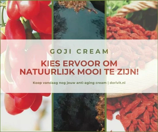 Probeer nu onze voedende Goji dag- en nachtcrème die rimpelvorming helpt te vertragen en de huid jong en strak houdt. De unieke formule is onder andere verrijkt met Jojoba olie en fruitextracten waardoor de Goji Cream een weldadige structuur heeft en een heerlijk frisse geur.