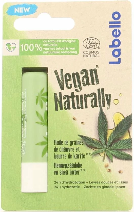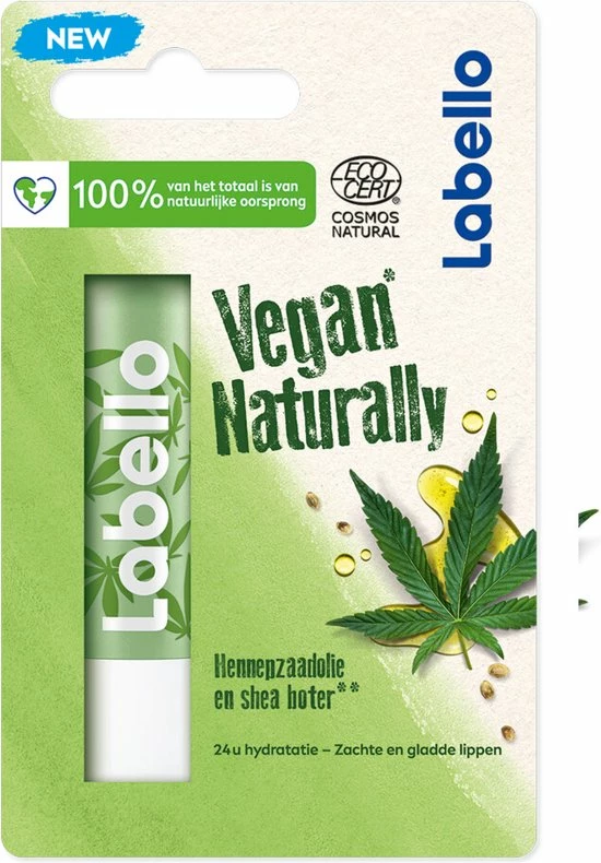Verzorg je lippen met Labello Vegan Naturally Care met hennepzaadolie en biologische sheaboter om ze de hele dag mooi glad en soepel te houden en ze te beschermen tegen uitdroging! Geniet de hele dag van natuurlijk, gezond uitziende en zachte kusbare lippen. Geniet van gezond uitziende lippen met behulp van onze natuurlijk veganistische lippenbalsem, met hennepzaadolie. Onze formule beschermt en hydrateert je lippen tot 24 uur lang! Voor dagelijks gebruik op normale tot droge lippen.
