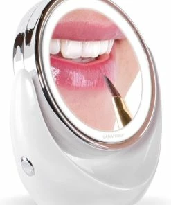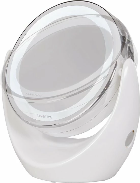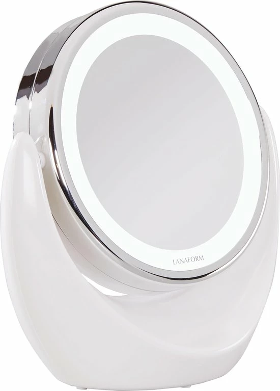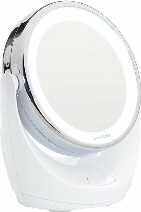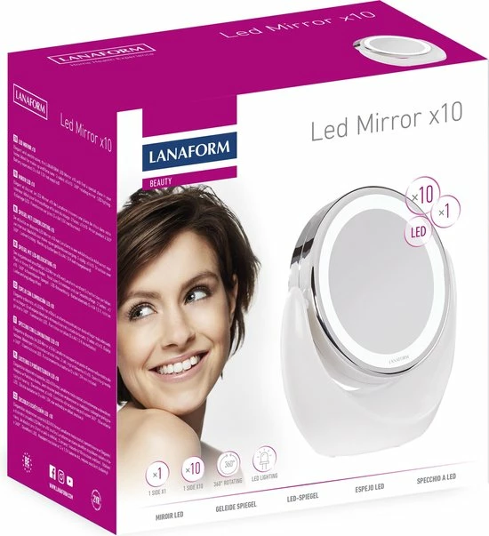 De LED Mirror X10 van LANAFORM? is een 10X vergrotende dubbelzijdige spiegel (X1/X10) met led verlichting. Deze designspiegel is ideaal voor make-up en gezichtsverzorging en verdient een ereplaats in uw interieur. De 360? draaiende dubbelzijdige spiegel is aan een kant 10X vergrotend. Hij heeft ook een led verlichting en heeft een diameter van ongeveer 11 cm.