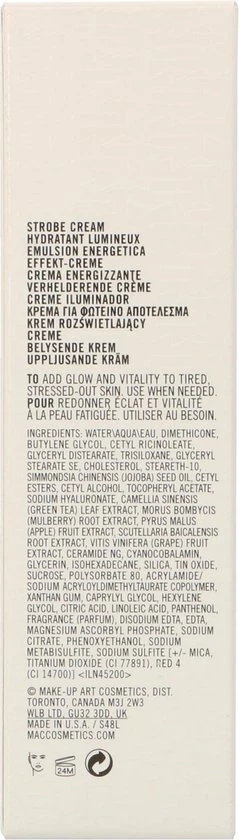 Het ultieme product voor een vermoeide, gestreste huid. MAC Strobe Cream hydrateert, verfrist en optimaliseert de doffe, futloze en vermoeide huid met een extra dosis effectieve kruideningrediënten, vitaminen en groene thee. Geeft een stralende teint ongeacht de lichtomstandigheden, of het nu zonlicht of schijnwerpers is.