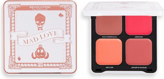 Ontdek je innerlijke beminnelijke schurk met deze DC x Revolution Cream Blusher Quad. Met vier verleidelijke cream blush tinten die je een natuurlijke, gezonde uitstraling zullen geven. Deze Quad heeft kleurnamen als ‘ACE CHEMICALS’, ‘ARKHAM’, ‘ASYLUM’ en ‘THE JOKERS FAVOUR’, ge?nspireerd op de gekke liefde van The Joker en Harley Quinn.
