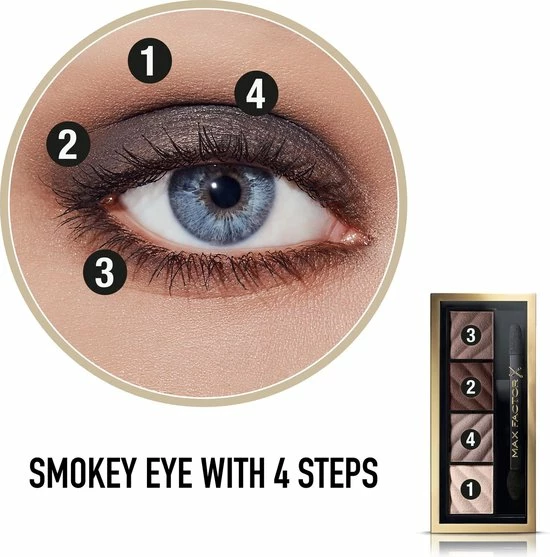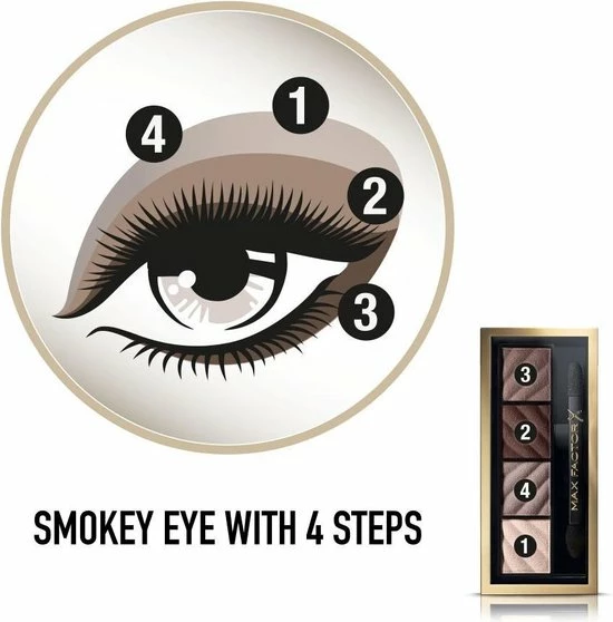 Max Factor Smokey Eye Matte Drama Kit. Oogschaduweffect: Smoothing, Kleurgroep: Bruin, Kleurnaam: Smokey Onyx. Hoeveelheid: 1,8 g. Applicatortype: Spons