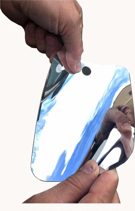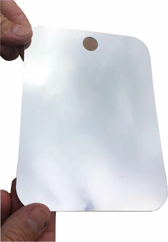 Een heldere hand spiegel speciaal voor het scheren en aanbrengen van make-up. Deze felxibele spiegel is gemaakt van kustof en even onder de warme kraan beslaat die niet.
