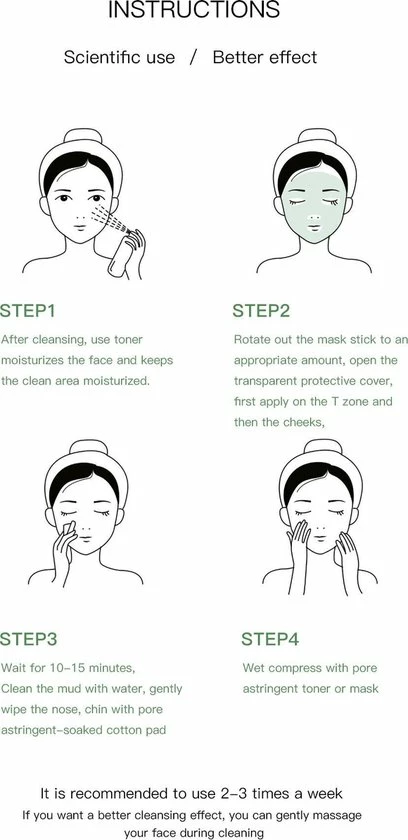Met de Detox Stick verwijder je alle vuiligheid die verborgen zit in je huid. Al de vieze bacteriën die puistjes, verstopte poriën en zwarte puntjes veroorzaken. Het bespaart je tijd, pijn, geld en je creëert een mooie reine huid die veerzacht aanvoelt. Volg onderstaande instructie’s om beter en sneller resultaten te behalen.