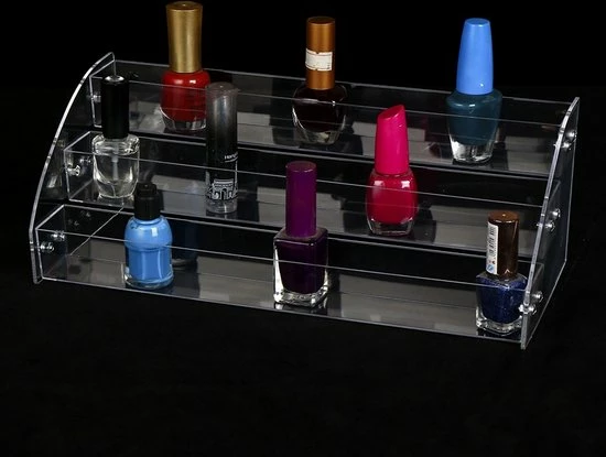 Door 3 verdiepingen met lange stroken in plaats van hokjes kun je veel verschillende vormen en maten nagellak kwijt. Door de strakke, neutrale uitstraling past deze display bij elk interieur. Maat 310x248x185 mm hoog. De houder kan gebruikt worden voor veel verschillende doeleinden. Denk aan een mooie display voor make-up, lippenstift, nagellak, sieraden of accessoires. De houder is gemaakt van doorzichtig plastic en daarom lichtgewicht en gemakkelijk te verplaatsen. De houder kan als mooie eyecatcher staan op een make-uptafel, kast of bureau.