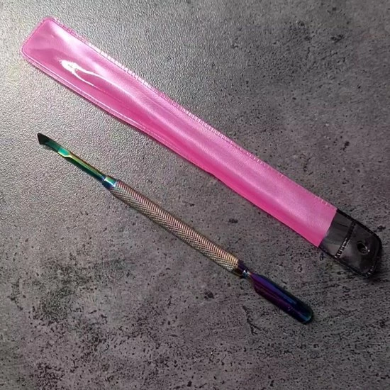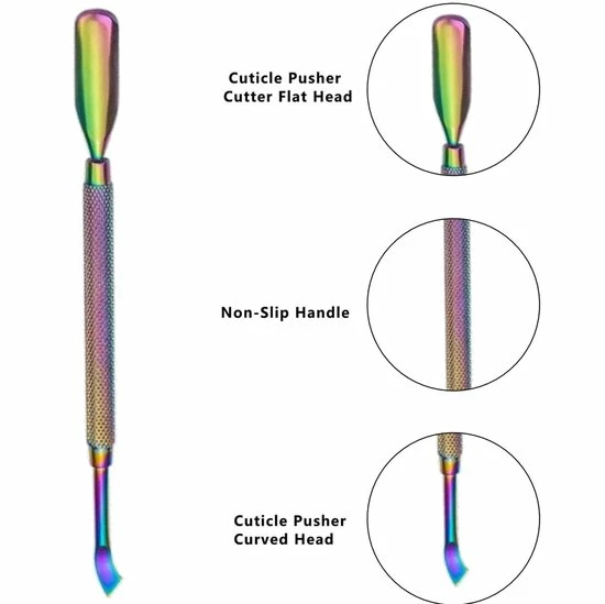 De cuticle pusher ook wel nagelriemduwer of bokkepoot genoemd, is een zeer praktisch hulpmiddel om nagelriemen te verwijderen. De cuticle pusher heeft twee zijden: de ene zijde wordt gebruikt om de ongewenste huid te verwijderen en de nagelriem los te maken. De andere kant wordt gebruikt voor het veilig verwijderen van overgebleven huiddeeltjes.