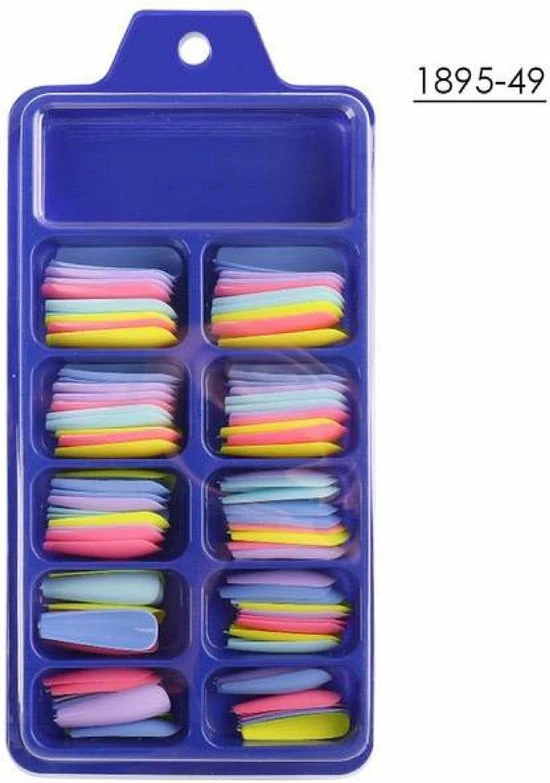 100 stuk Kunstnagels in 6 verschillende kleuren .De nagels zijn perfect voor een feestje of wanneer je gewoon zin hebt in wat anders De Nagelstickers zijn geschikt voor nail art