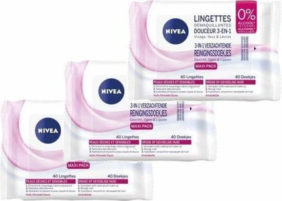 Nivea 3-in-1 verzachtende reinigingsdoekjes, verrijkt met Amandelolie