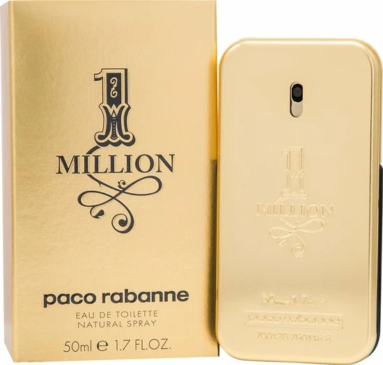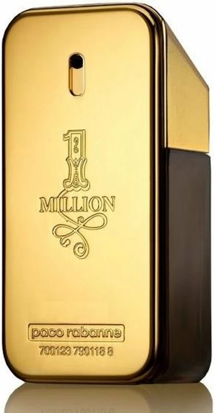 Inspired by Rabanne’s metallic fashions,1 Million was in particular a 1967 dress worn by singer Frani?1/2oise Hardy. The fragrance was developed by perfumers Olivier Pescheux, Christophe Raynaud and Michel Girard, and features notes of grapefruit, rose, cinnamon, spice notes,mint, blood orange, blond leather, white woods, amber and patchouli. The 1 million bottle is modelled after a gold ingot.