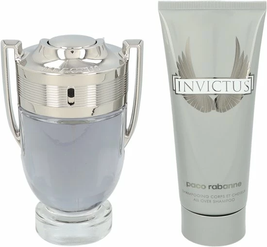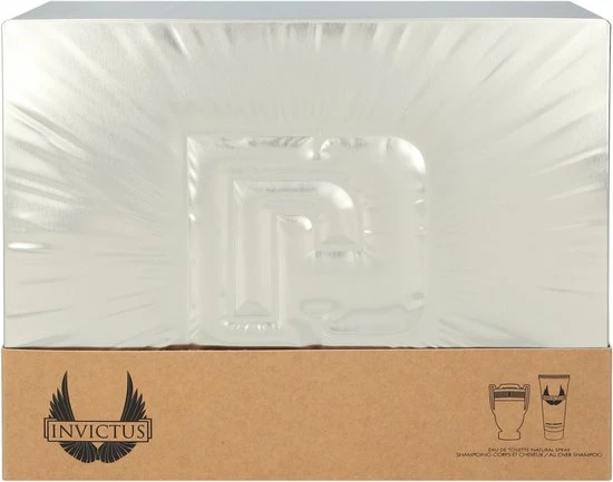 De set bevat de 100 ml Eau de Toilette Invictus en een bijpassende 100 ml all over shampoo voor het haar en lichaam.
