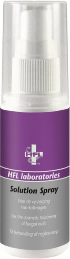 Solution Spray is een gepantenteerd product van HFL Laboratories voor de behandeling van schimmelnagels, kalknagels, mycosenagels, voetschimmels en ook andere huidschimmels zoals zwemmerseczeem. Het kalmeert de huid en maakt de nagels weer gezond!