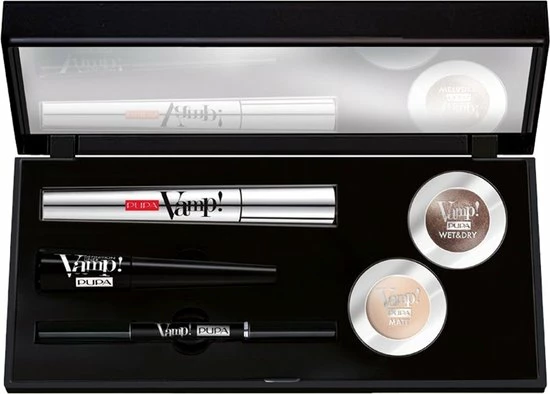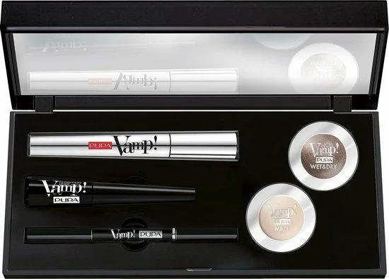 | Verpakkingsinhoud | Vamp!, Silver, Box:, Vamp!, Mascara, Vamp!, Definition, liner, Vamp!, Mini, Multiplay, Eyepencil, 09, Vamp!, Matt, Eyeshadow, 020, Vamp!, Wet&Dry, Eyeshadow, 102 |