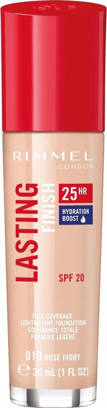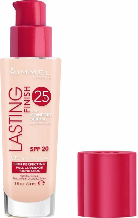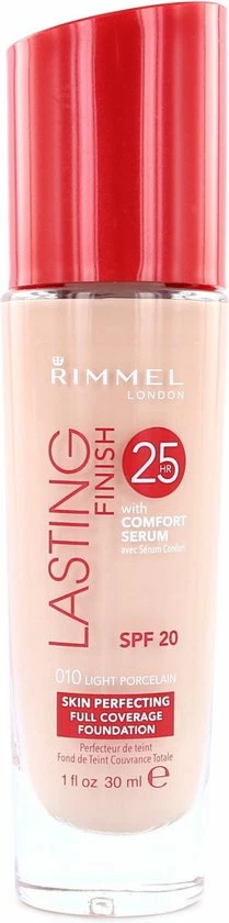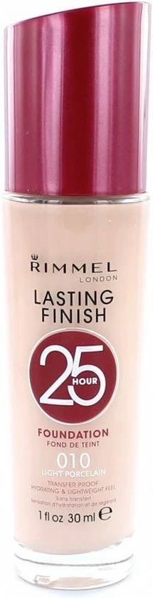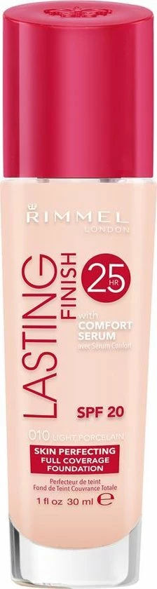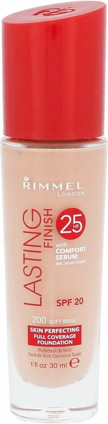 Rimmel London Lasting Finish Foundation zorgt voor een egale, stralende huid die geweldig aanvoelt van ?s morgens vroeg tot ?s avonds laat! Deze langhoudende foundation smelt perfect samen met de huid en is veeg,- en zweetproof. Met een medium tot volledige dekking verdwijnt de zichtbaarheid van lijntjes, pori?n en onzuiverheden als sneeuw voor de zon. De Rimmel Lasting Finish bevat SPF en heeft een lichte, fluweelzachte textuur die gemakkelijk aan te brengen is. Het huidvriendelijke comfortserum levert onmiddellijke hydratatie terwijl vitamine E helpt bij het bieden van extra huidbescherming tegen vrije radicalen. De Rimmel London Lasting Finish Foundation is de perfecte basis voor je make-up. Contouring met foundation: Contour een natuurlijke look zonder bronzer of een highlighter. Je hebt foundation nodig in drie tintent om lichtreflecties en schaduwen te weergeven. Fixeer vervolgens de countouren met fixer spray of -poeder. Contouring is een make-uptechniek waarmee je je gezicht alleen met make-up vervolmaakt. Het geheim schuilt in het spel met licht en schaduw: Door opzettelijk hoogte en diepte aan te brengen tijdens het contouren, verander je het effect van je gezichtscontouren. Contour-make-up geeft je gezicht een bijzonder uitgesproken driedimensionaliteit en symmetrie en laat je van je beste kant zien. Met contour-make-up breng je je natuurlijke uitstraling optimaal tot zijn recht. Door je gezicht te contouren, verberg je kleine vlekkjes en oneffenheden