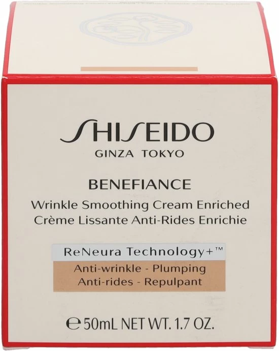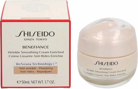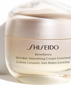Shiseido Benefiance Wrinkle Smoothing Cream Enriched is een hydraterende anti-aging crème die zichtbaar rimpels corrigeert. ReNeura Technology + ™ laat de huid optimaal reageren, terwijl KOMBU-Bounce Complex dient als een natuurlijke vuller voor rimpels, die huidige en toekomstige rimpels helpt aan te pakken en de droge huid bestrijdt. De zijdezachte, gladde textuur wordt snel geabsorbeerd en hydrateert de huid van binnenuit. 24 uur lang hydratatie. Voor een gladde, veerkrachtige huid met een jeugdige uitstraling.