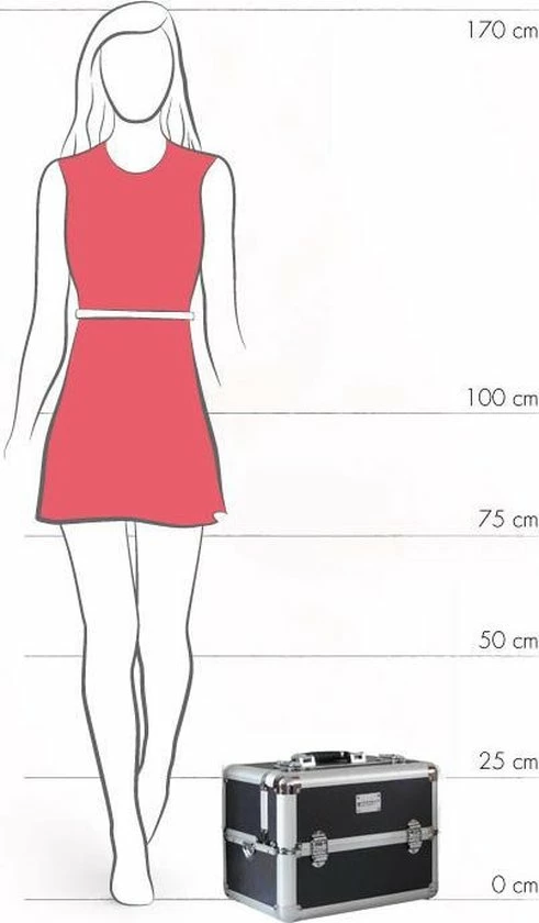 • – Buitenafmetingen beautycase: lang 36 cm x 24 cm x 27 cm.