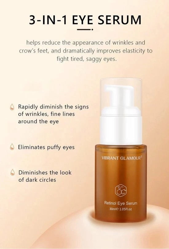 Retinol Oogserum helpt u om de gevoelige huid onder de ogen strakker en steviger te maken. Het is een echt wapen tegen ouderdom. Dit Oogserum verzacht fijne lijntjes en rimpels. Ervaar het gevoel van een onvergelijkbare elasticiteit van de huid en vecht tegen de leeftijd!