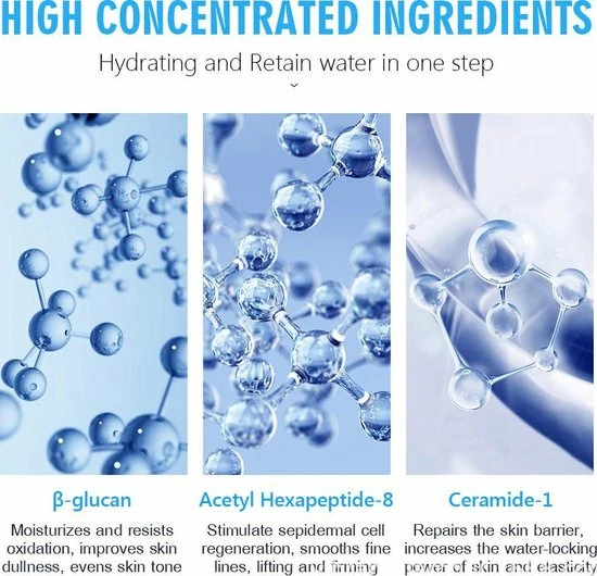 We weten allemaal dat er geen enkel wonderproduct is dat huidveroudering kan stoppen maar het is bewezen dat hyaluronzuur de huid voller maakt, fijne lijntjes minimaliseert en tekenen van uitdroging en veroudering vermindert.